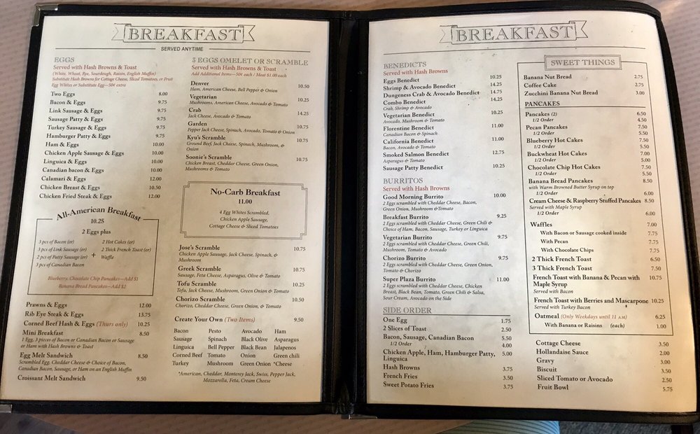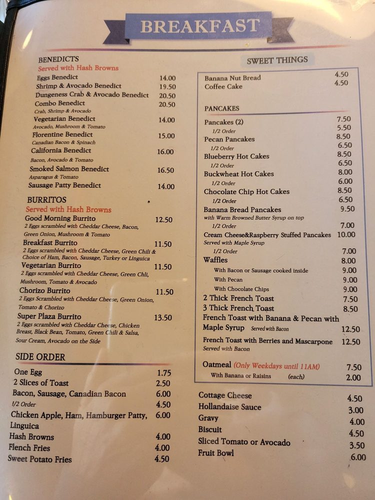 Plaza Cafe, located in Pleasant Hill, CA, offers a diverse menu including burgers, breakfast, brunch, and sandwiches. Known for their cordial service and delicious breakfast options, such as the linguiça and cheese omelette and Eggs Benedict. With a cozy ambiance and expert waitstaff, Plaza Cafe is a great spot for a filling meal. Customers also rave about the vegetarian omelette with tasty mushrooms and generous portions. The cafe offers outdoor seating and moderate noise levels, making it a pleasant dining experience. Despite occasional wait times, the efficient service ensures a satisfying visit. Whether it's a casual breakfast or a leisurely brunch, Plaza Cafe is a must-visit for a memorable dining experience.